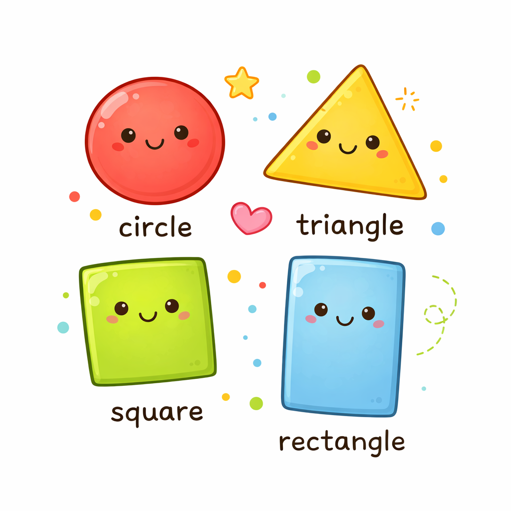 Ein Rechteck hat vier Seiten, zwei lang und zwei kurz.👉 Mit diesen Formen kann man viele Dinge bauen und erkennen – zum Beispiel Häuser, Fenster oder Spielzeuge.
